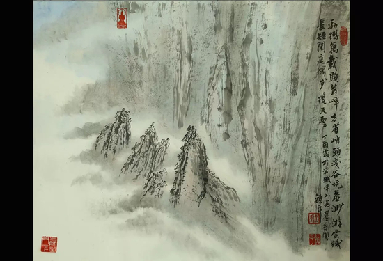 这件《山外山》描绘的是远处一座大山,前面的山经过上万年的养成已经很高了,但当他看见这座更巍峨的山,感觉到一山更比一山高,寓意在于一个人要知道天地之博大,不能坐井观天,不能自高自傲。