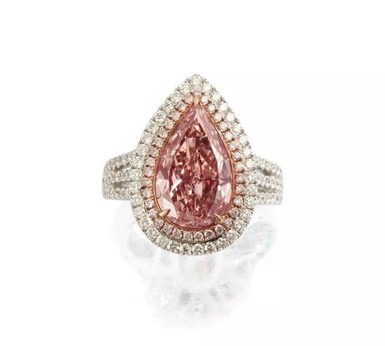 4.08克拉梨形彩棕粉色钻石配钻石戒指