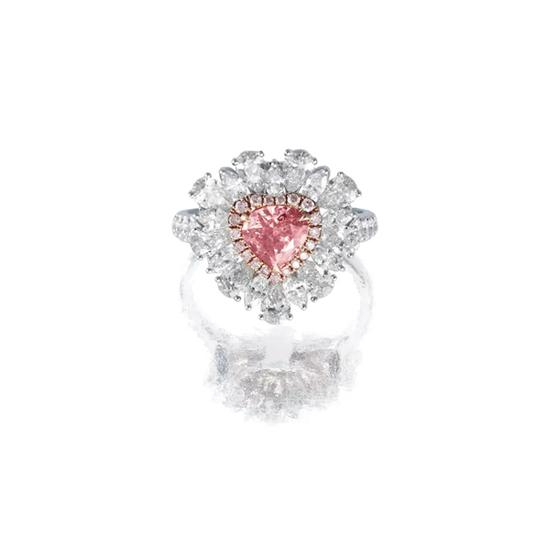 1.00克拉心形浓彩粉钻配钻石戒指/吊坠