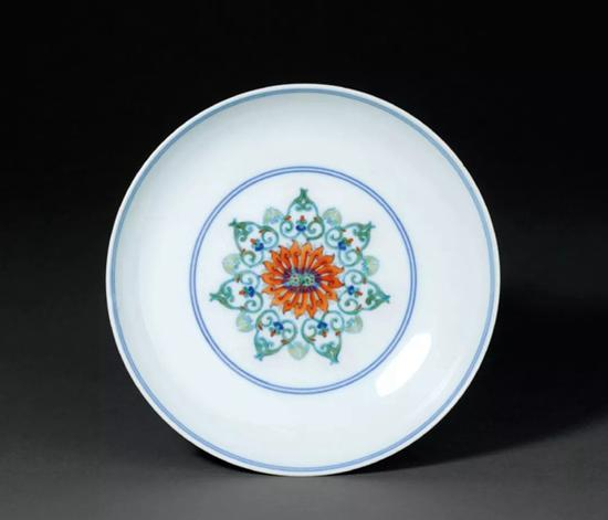 台北故宫博物院藏清雍正斗彩并蒂莲纹盘