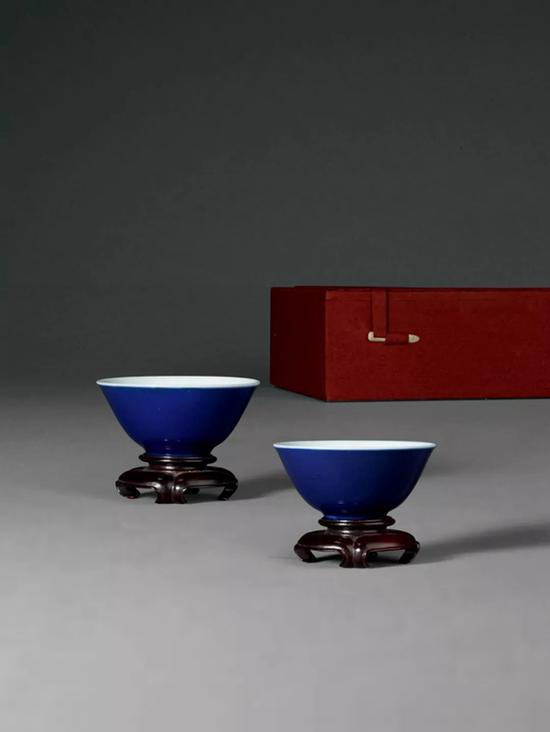 Lot 855 清雍正 霁蓝釉杯一对
