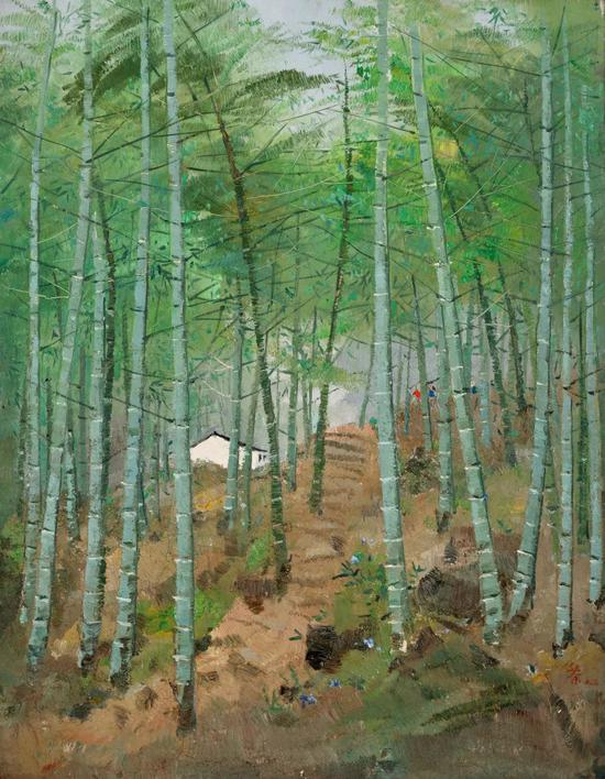 《黄山竹林》创作于吴冠中20世纪70年代油画的黄金时期。他结合写实和意象化的笔触处理,营造出竹林宁静清幽的意境,他所画的竹林除了寄寓着对童年故土的怀念之情,更是其文革期间坚忍不拔生命力最好的写照。