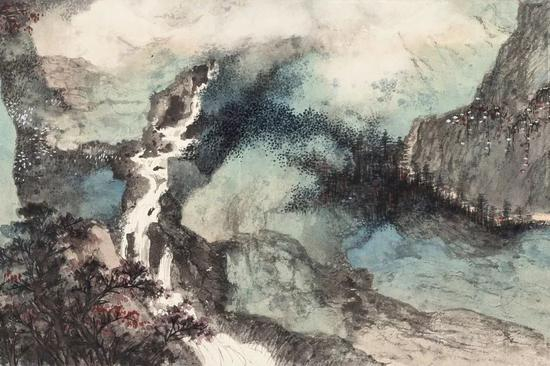 此时,正值吴湖帆笔墨清刚流丽,转变圆浑灵活之时。画风不似前期拘谨又未及晚年过放,包蕴二美,可谓水墨烘染与青绿设色熔铸一体。