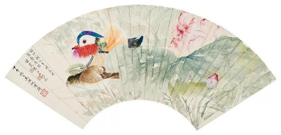吴湖帆是才艺双馨的世家子弟,而周炼霞则是以词画名世的民国名媛,二人书画交游,诗词唱和,共同演绎了海上画坛的一段风流佳话。此扇面集吴湖帆与周炼霞两家妙笔于一图之中,缜密秀丽,清隽雅逸。不但画技精湛,也见证了二人之间一段深厚的丹青情谊。