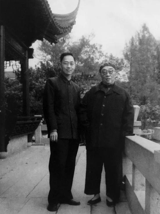 1957年2月,吴湖帆与徐伯清摄于豫园