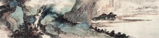 吴湖帆拟古之作最著名者当为《临黄公望富春山居图》卷,此卷曾在2011年秋以近亿元成交,创下吴湖帆作品拍卖的最高纪录。此《仿王石谷江山无尽图》卷在艺术性上较之亦不遑多让,况且尺幅巨大,笔墨精湛,识者得此,自当宝之。