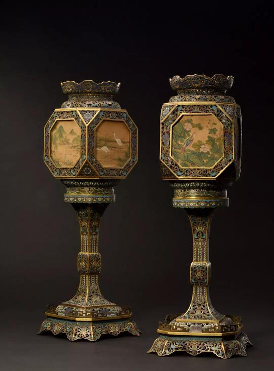 御制掐丝珐琅嵌绢画宫灯(一对)