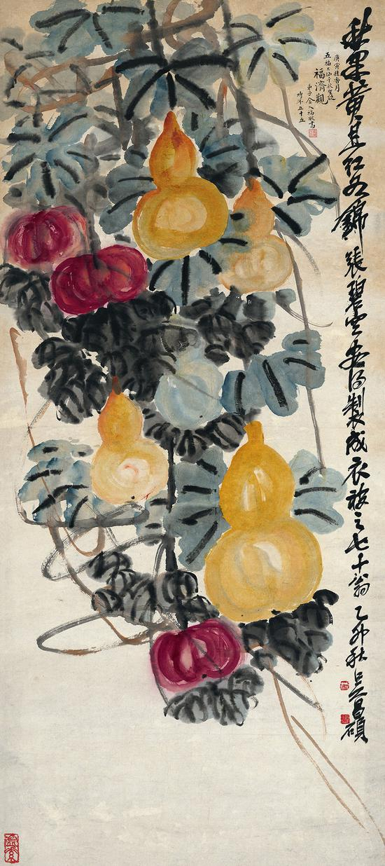 西泠印社首任社长吴昌硕的作品依然是西泠拍卖的重头,包括花卉、竹石、书法,品类丰富,《葫芦图》、《梅石图》、《金英益寿图》等多幅经典力作,邀君共赏。