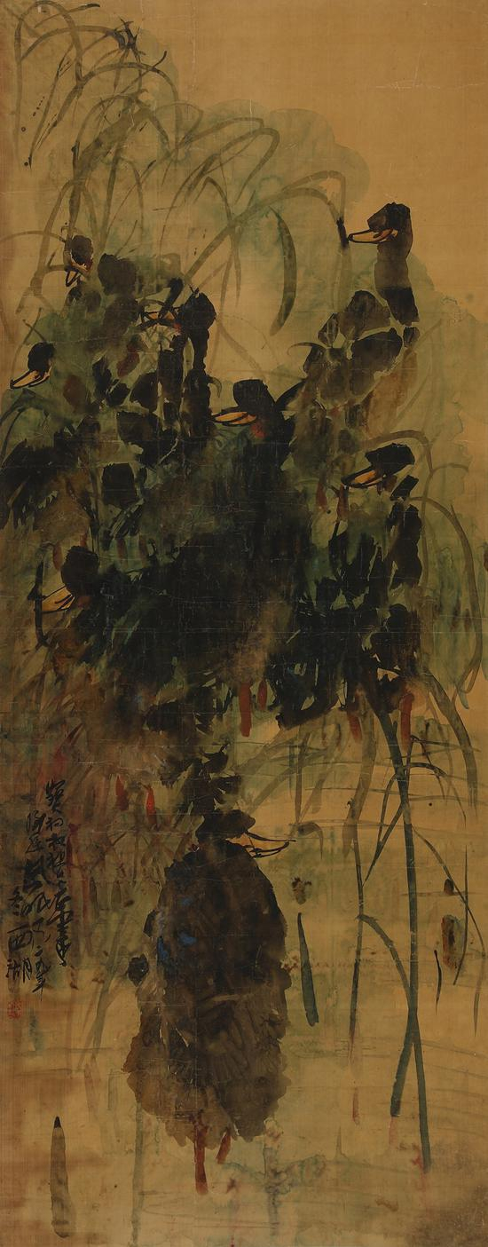 “风在起时——纪念林风眠诞辰120周年特别专题”包含一批六件林氏孤品佳作,来源可靠出自同一藏家。上款人是广东梅州林氏长辈,五件有明确纪年,两件为罕见的绢本彩墨,创作时间为1929、1932 年其在杭州初任校长期间,落“西湖”款;至早一件画于1919 年其留学前夕,钤印著录于林氏早年印谱;两件作于1939 年战时途经香港。至大一件达到15 平尺(205×81cm),其余的7、8 平尺不等。这组画作蕴含了画家的成长经历,“折射”出画家从出国学习前的细致认真,到担当大任的浑然天成,再到身处历史漩涡的“高山流水”。那份笔下的中西合璧、洋为中用和自信磅礴,让观者都屏气凝神,流连不去,也可见林氏画风对弟子和现当代中国美术的深远影响。从林风眠作品收藏的角度,此一时期的画作具有稀缺性、价值性和不可替代性。