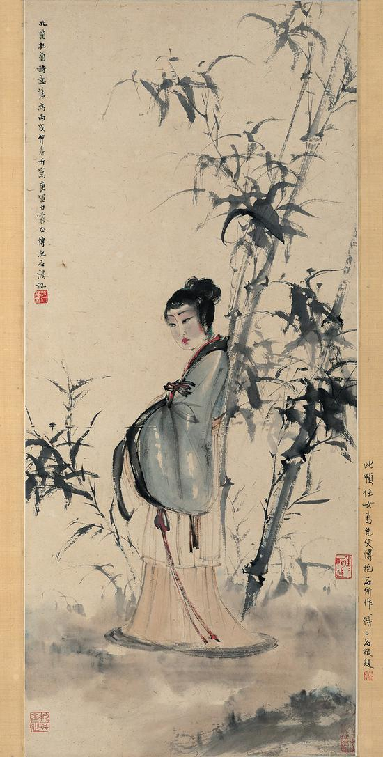 傅抱石是现代金陵画派的领袖,其作品市场认可度极高。本次所呈拍的《竹荫仕女图》为傅抱石之子傅二石最看重的作品,并经过其亲自鉴定为傅抱石真迹。