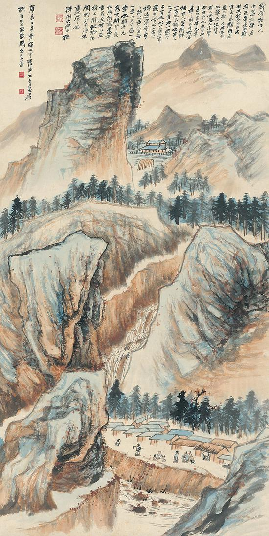在中国近现代绘画史上,张大千亦是最为值得关注的大家之一。在张大千整个艺术生涯中,摹古作品占有绝对重要的位置,他一生都在“血战古人”。《仿石涛山居图》与《仿石涛华阳仙馆图》是其摹古的精品力作。