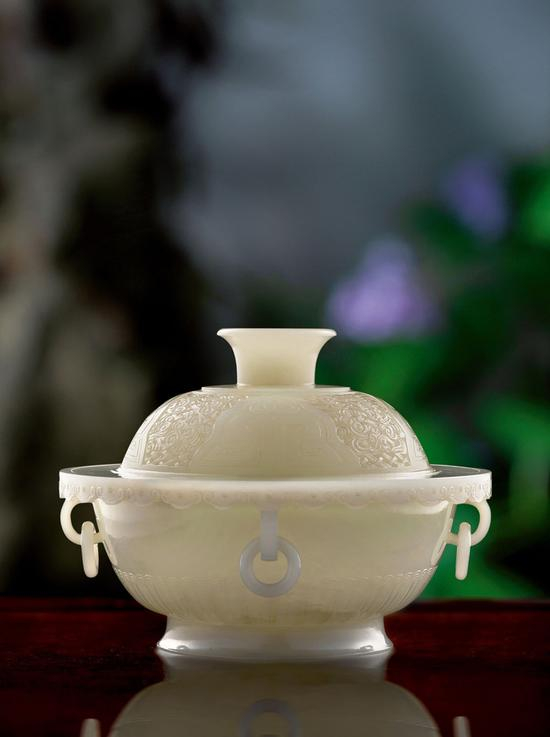 清乾隆·白玉雕蕉叶如意纹圈耳活环香薰
