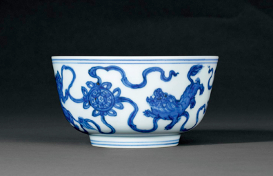 明正统至成化 青花瑞狮戏球图墩式碗172.5万成交