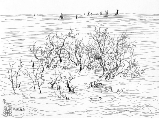 达活泉为河北邢台名胜。1972年,在河北农村下放的吴冠中被允许在节假日作画,开始重拾创作,同年被军队领导调到邢台师部指导文艺兵作画,参看作于此年的油画作品《达活泉》,可知稿本渊源。
