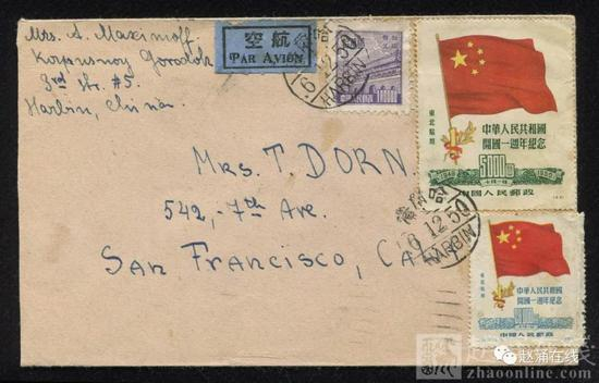 邮政史类藏品也不乏精彩成交,如文票大全套实寄封以22万元高价成交;1950年湖北竹山宝丰镇挂号寄上海封一件、贴陕南区毛像红色200元八枚、火车图八枚(邮资共计2000元)以近15万元成交等,众多藏品为首次在赵涌在线出现。