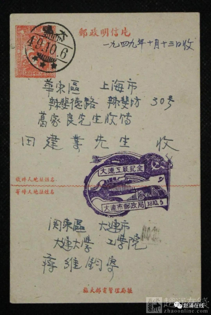 旅大区1949年大连寄上海毛像25元邮资片一件、销大连戳