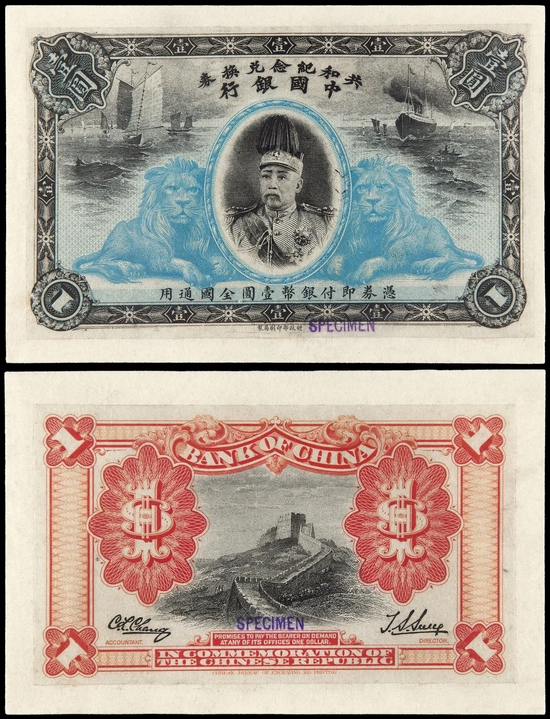迄今所见,共和纪念兑换券单、双面样票存世仅约八枚,其中三枚分别藏于中国人民银行上海分行及上海博物馆,其余为海内外私人收藏。拍品是唯一正、反两面均加盖“SPECIMEN”字样的单面样票,以货币形式,记载了中国社会从封建帝制到共和政体的巨大历史变革,具有重要的近代印钞造币史研究价值与货币收藏价值。