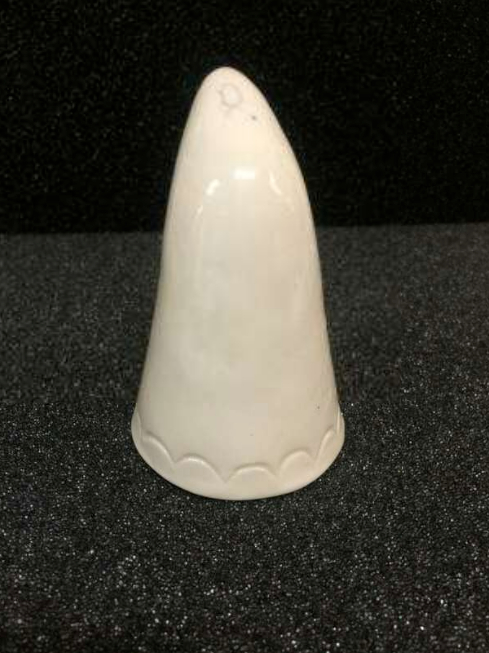 本件作品型如犀角,葵口,口沿外壁塑有层层叠叠的山峰。通体尽施白釉,瓷质致密。釉面白中微泛牙白,洁净无暇,透光犹如凝脂,温润柔和。杯体所雕纹饰简洁精致,造型生动,原配硬木雕灵芝底座,精致细巧,是典型的明代晚期至清代早期作品。