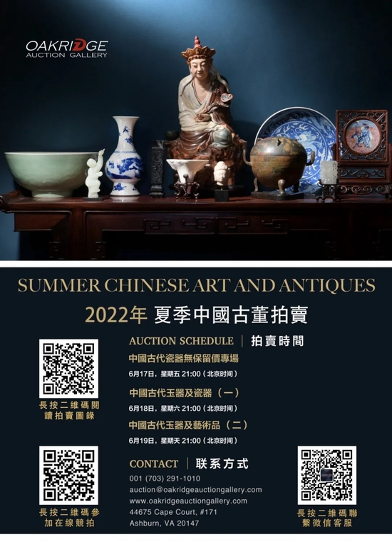 美国奥克里奇中国古董夏季拍卖6月17日至19日举槌