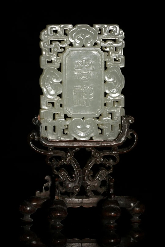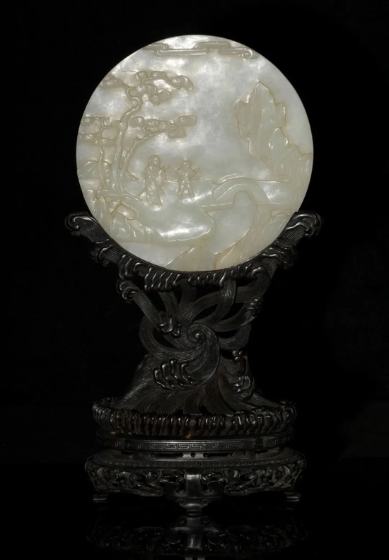 此屏配以硬木雕海水纹座,海水连绵不断,造工精细复杂,极具十八世纪工艺特色。此类题材在乾隆时期尤为盛行,可参阅各大博物馆藏。清宫亦藏有类似插屏陈列,可以参照。