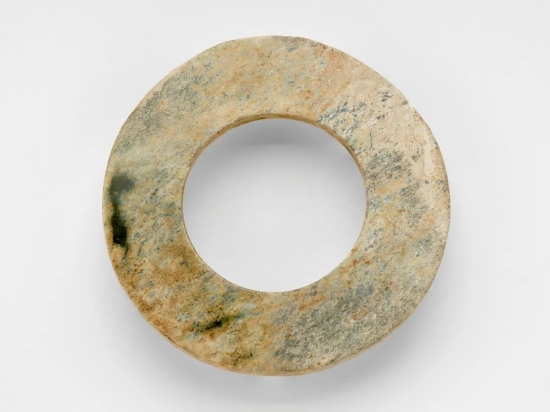 此类玉环古时多为贵族佩戴之物,搭配作组佩用,彰显贵族礼仪,其丰富色彩在同类中较为少见。每件玉器的沁色都是独一无二的,透光性好也证明了其在后世传承有序,历经世事变迁仍保存完好,甚为难得。