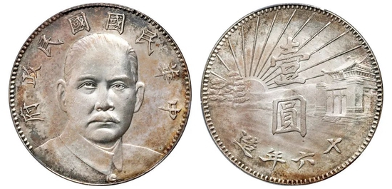 民国十六年造孙中山像陵墓壹圆银币样币/PCGS SP63