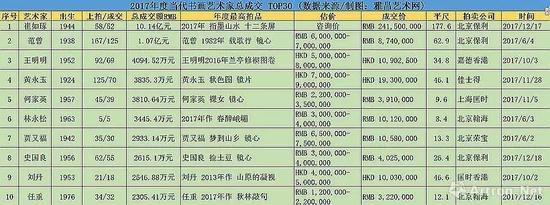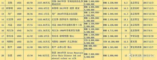 ▲2017年度当代书画艺术家成交 TOP10
