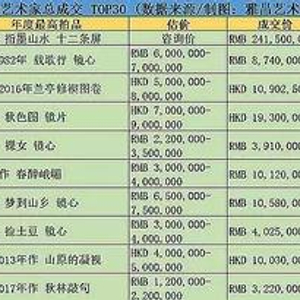 ▲2017年度当代书画艺术家(在世) 总成交 TOP30 总成交 TOP30 (数据来源/制图:雅昌艺术网) (数据来源/制图:雅昌艺术网)