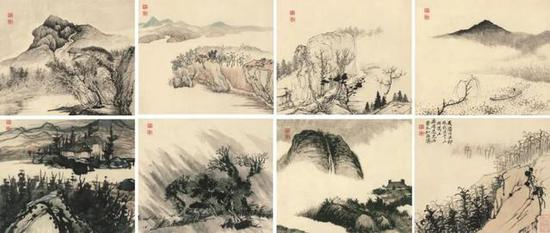 石涛 山水册页 纸本设色 30x35cmx8