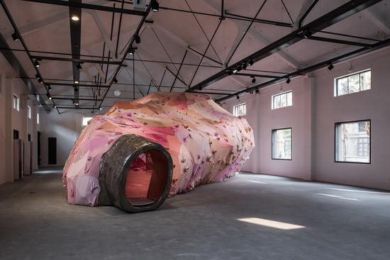 尹秀珍是特别随和的一个艺术家,平和温暖,她喜欢用旧衣物来创作艺术品。像她说的,衣服有温度,也有亲密性。到乌镇的这件作品是她选择了粉颜色的秋衣秋裤来缝制的。在这个快节奏的社会里,人们想找到一个安静的角落,可以放松,回归自我。而母亲的子宫就是最原始的归属。