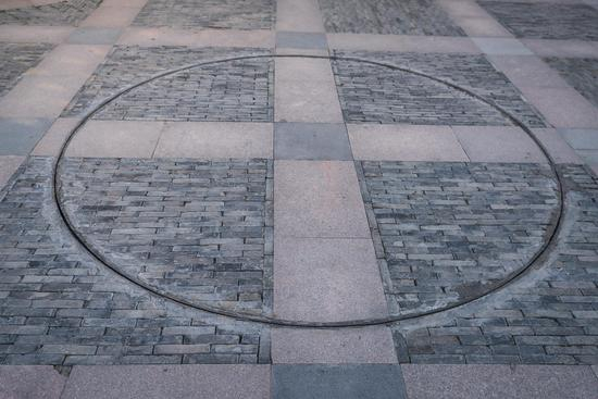这个作品就是在地面上做了一个转盘,人们站上去就会自动跟着旋转,没有方向,也是任何方向……天呢,我感受到了艺术家的“良苦用心”,把这件作品放在汉密尔顿作品的旁边,想问策展人,你是故意的吗?