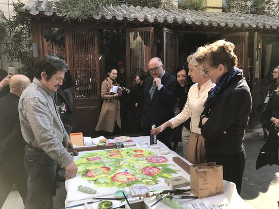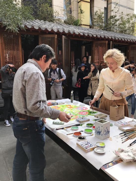中国艺术家耿鑫采用了起源于西方的布面油彩,以富有表现力的笔触再现了充满异国情调的俄罗斯风景和温馨安静中国乡村景色。与之呼应,来自爱尔兰的瑞莲则使用了中国传统绘画所用的宣纸作为载体,鲜明的水彩在宣纸上迸发,既有宏观世界中绽放的花朵,也有微观世界里细胞分化。在展览大厅里,两位艺术家的作品间隔陈列,既形成鲜明的对比,又彼此呼应。