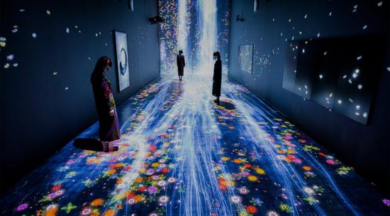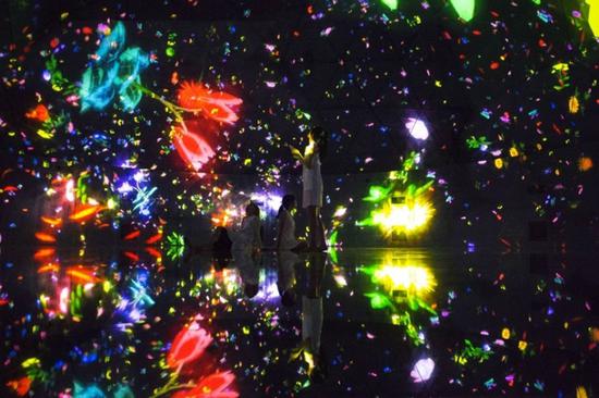 新媒体艺术团体teamLab由近400人的团队构成,成员包括艺术家、计算机工程师、建筑师、CG动画师、应用设计师甚至数学家等,利用新媒体技术的与观者产生互动,模糊了科学与艺术之间的边界。在他们的标志性作品“Flowers and People”系列中,他们利用实时运算的技术呈现一年四季的鲜花,而虚拟的花海会根据观看者的互动行为不断随之绽放或凋谢,在屏幕上即将看到的每一朵花都是独一无二的,且一旦凋谢就不会再重生,因此,观者和花之间正如日本茶道中的“一期一会”,每个瞬间都只有当下一刻的机缘,令人动容。这个独特的大型互动作品此次也将在北京个展中亮相。