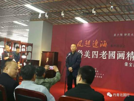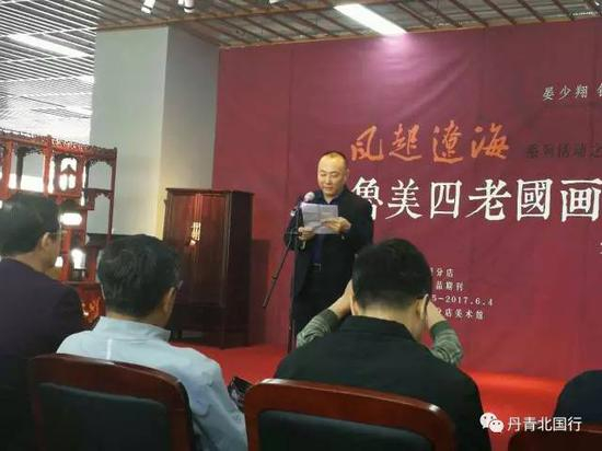荣宝斋《艺术品》期刊总编辑王登科主持开幕式:这是一次别致的展览,深情回望20世纪中国画坛熠熠闪烁的四颗星星,纪念他们为辽海美术作出的贡献,他们的创作与创造使我们的回忆花团锦簇、无比充盈。荣宝斋以这样的展览为契机,将在更大范围内关注时光与岁月中的遗珠。