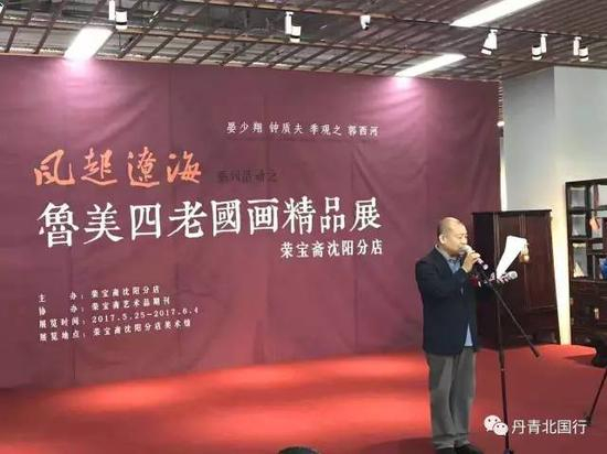 辽宁省文联副主席胡崇炜致辞:鲁美四老在辽宁乃至全国绘画界享有盛誉,他们精深的艺术思想、精湛的艺术造诣感召和影响了辽海画风。他们生前都是诲人不倦的良师,培养了大批优秀美术人才,焕耀于辽海大地,为中国传统绘画的艺术传承作出巨大贡献。荣宝斋沈阳分店举办此次展览,是对辽沈文化艺术发展的有力推动。