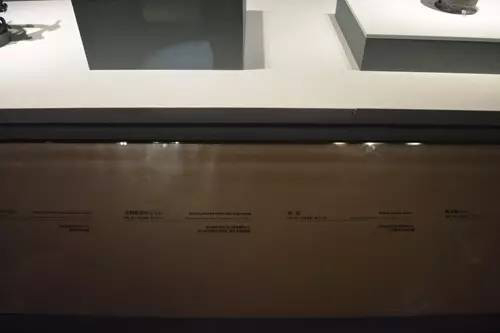 由于展品数量多,且大多数展品被陈列在同一展柜中。因此,在展览布置方面,展柜中出现了连续说明牌用来交代文物的信息。然而展览选择了环境照度较低、展品照度较高的设计方式,虽然着重凸现了展品的存在感,营造出一种神秘的氛围,但是说明牌往往处于展品照明的边缘,能见度极低,对观众阅读造成了障碍,使得展览参观体验并不舒适。