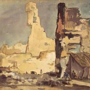 宗其香《重庆被日军轰炸后》 纸本水彩 24.5×31.5cm 1939
