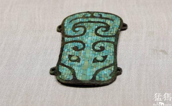 轰动考古界的“绿松石镶嵌青铜牌饰”也在展览中亮相。它于1984年在偃师二里头遗址出土,是目前我国发现最早最精美的镶嵌铜器,是夏代青铜文明的重要物证。1982年郑州商城遗址向阳食品厂窖藏出土的兽面乳钉纹铜方鼎,则是3600年前商王朝的国之重器,也是郑州商城为商代早期王都的重要物证。
