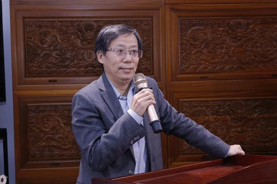 中央民族大学外国语学院教授、博士生导师何克勇教授在致辞中点到,周殿平的画推陈出新,能抓住画面中的紧张感,以西方技巧突出了文人气质,希望这样的画走进高校,更多地靠近年轻人。
