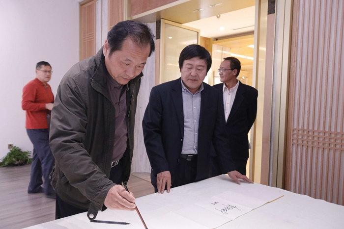 参加本次展览开幕式的领导和嘉宾有原文化部副部长常克仁,民政部原常务副部长、中央国家机关书法家协会副主席、中国爱国拥军促进会会长、中国爱国拥军书画院院长罗平飞,最高人民法院书画协会副会长、中央国家机关书法家协会副主席兼秘书长、中央国家机关美术家协会副主席尹祥君,原外交部驻日本国总领事、驻尼泊尔大使吴从勇,文化部直属党委书记王吉,中央民族大学教授、博士生导师何克勇教授,中国传媒大学教授、博士生导师王四新,最高人民法院办公厅原巡视员于新年,著名画家鲁石,王府井工美大厦商场副总经理牛超,工美文房组王彬,艺术批评家、点滴艺术总编李海浪,企业家毕霞,茅台旗舰店总经理张国忠等。军队领导有,孙建国上将,熊中民少将,时应诚少将,孔利少将,刘平少将,李利大校。开幕式由执行策展人王文岩女士主持,在京重要美术机构代表、社会各界代表等共100余人参加开幕式。