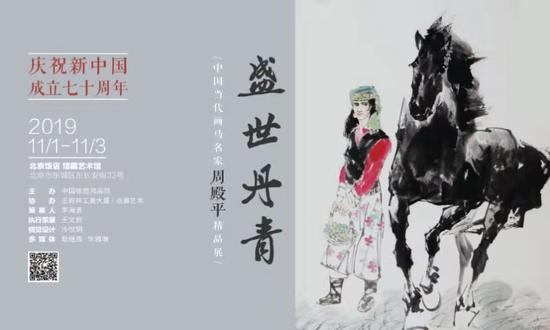 为庆祝中华人民共和国成立70周年,由徐悲鸿画院主办,王府井工美大厦、点滴艺术协办的“盛世丹青——中国当代画马名家周殿平精品画展”开幕式于2019年11月1日下午在北京饭店二层馆藏文化艺术中心举办。