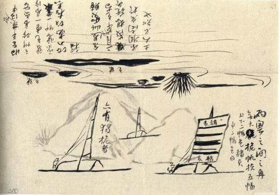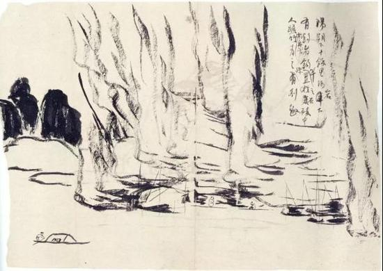 《远游写生画稿(局部)》创作年份不详 纸本墨笔 北京画院藏