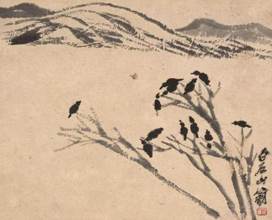 《栖鸦图》(展览展品)创作年份不详 纸本墨笔 北京画院藏