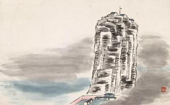 《借山图之五·独秀山》1910年作 纸本设色 北京画院藏