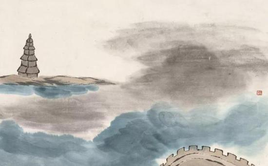 《借山图之四·洞庭君山》1910年作 纸本设色 北京画院藏