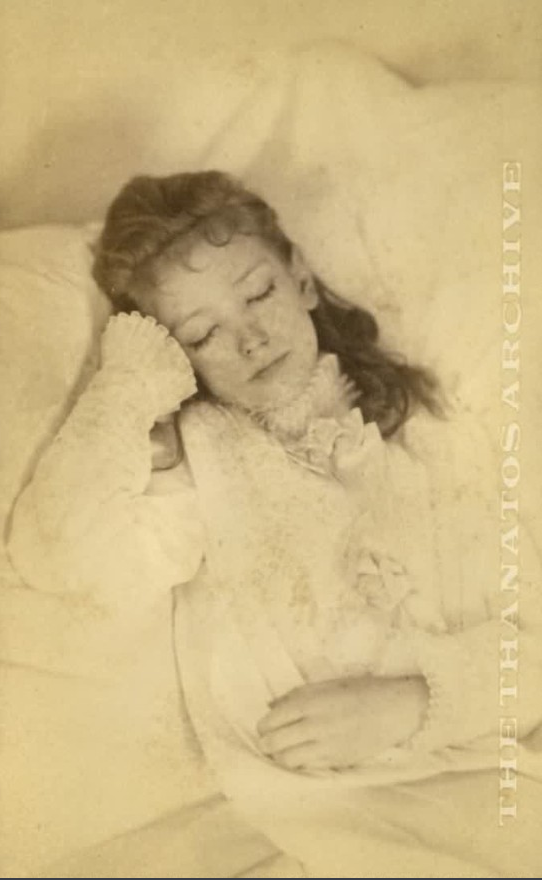 19世纪初,人物肖像画在欧洲风靡一时,社会名流们都愿意花大价钱请画家留住自己或家人的倩影。1839年,由于银版照相术的出现,这项原本属 于权贵阶层的活动变得更加平民化。与之同时,遗体艺术摄影(Post-mortem Photography)也为大众提供了一种更为便宜、快捷的方式,用以纪念他们逝去的挚爱。