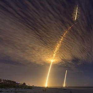 6月,猎鹰9号运载火箭夜间发射时,他在几英里之外巧妙拍到了精彩瞬间:火箭喷射出的光芒划亮了漆黑的夜空。他利用谷歌地图侦测最佳拍摄地点,保证火箭出现在画面的中心位置;再用长曝光拍下火箭升空的每个阶段,最后用PS合成为一道完整又惊艳的光弧。