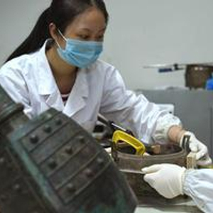 记者在江西省文物考古研究院的青铜器修复实验室看到,一批已修复完成的青铜器正在等待移送文物库房。青铜器整形修复专家、国家博物馆研究员陈仲陶说,文保工作者主要通过整形、焊接、着色等工序,使青铜器文物达到展陈效果。目前,已完全修复的青铜器为80多件,仍有20余件正在修复中。其中,一件青铜甬钟刚出土时碎成了20多块,经过文保人员两个多月的努力,已经器型完整、纹饰清晰、光泽如新。