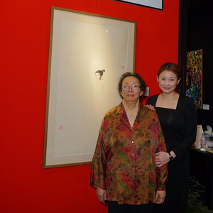 傅益璇(左)与其女儿傅蕾蕾在傅抱石先生的作品前留影