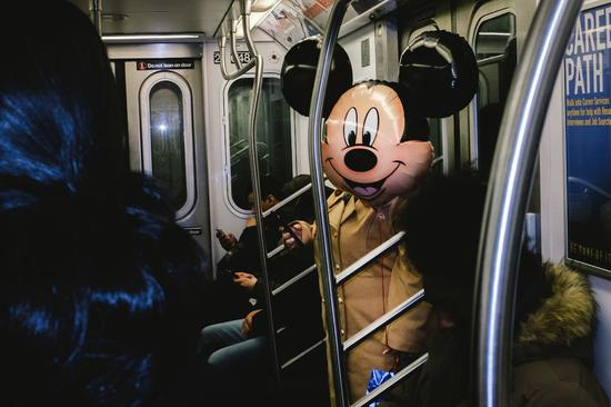 “我第一次发现这个地方(时代广场的Google Play广告墙)时,我喜欢这个生动、极简而且干净的背景,所以我决定先试试坚持半个小时,看看会有什么成果。一个小时过去了,我的SD卡里依旧没留下任何我满意的照片。但是我能够感受到这儿潜藏着某种不同寻常的东西,所以我发誓我会尽可能多地回来,将潜在的可能性变成现实。连着好几个星期,我每天下午都会回到这里!